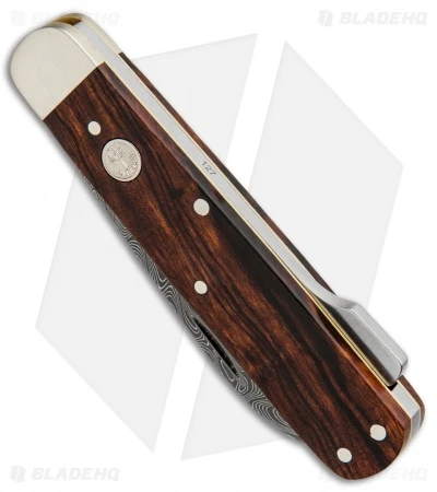 This Boker Annual Damascus 2018 Collector’s knife is outfitted with a rich desert ironwood handle and a Chad Nichols “Boomerang” damascus steel blade.