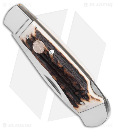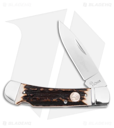 The Boker Lockback gentleman’s pocket knife with stag bone scales is a small, lightweight knife that easily fits into any pocket. It’s got an exquisite design, reminiscent of the classic lockback hunting knives of old, with new materials that provide a modern aesthetic. While a classy knife, it’s still a workhorse, with a D2 steel drop point blade featuring a nail nick for easy opening and a secure lockback. Never feel underdressed again with the Boker stag bone lockback!